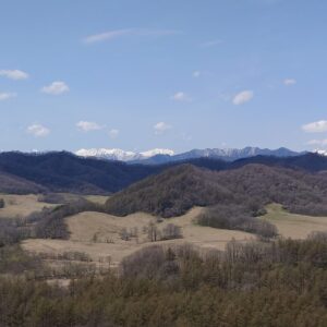 5月初旬でしたら日高山脈カムイエクウチカウシ岳よりさらに南側にあるペテガリ岳に注目です(展望台に山名が書かれた地図があります)。この山の山腹には氷期に形成された大きなカール(スプーンですくったような跡)が3つ並んであり、残雪残るこの季節はカールが特に美しくはっきりと見えます。日本国内でカールの残る山は日本アルプスと日高山脈の東側だけ、しかも平地からみられるのはとても珍しいことなので、ぜひ、日高山脈山腹に残るカールを探してみてください。